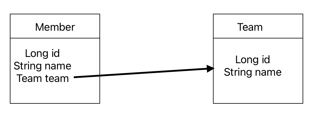 그림을 보면 Member와 Team은 다대일 연관관계를 가지고 있다. Member는 Team을 참조하고 있지만, Team은 Member를 참조하고 있지 않는다. 이 경우를 단방향 매핑이라고 한다.